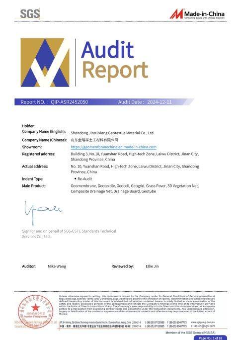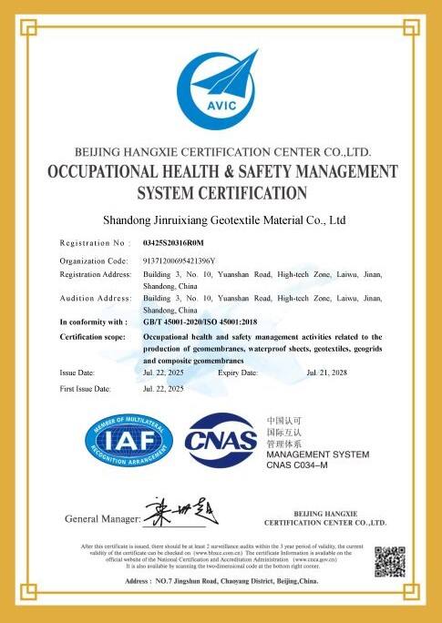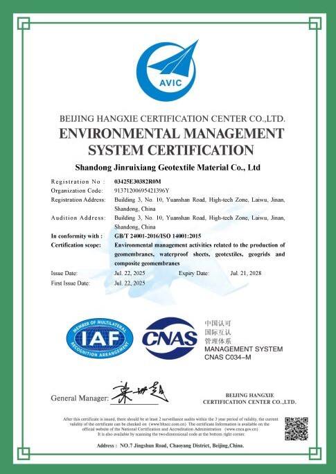 With years of professional manufacturing experience in geosynthetics, Shandong Jinruixiang Geotextile Material Co., Ltd. provides stable quality, complete specifications and reliable global delivery services. We strictly control production processes and implement international quality standards to ensure excellent performance and long service life of geotextiles, geomembranes, geogrids and other products. We support customized solutions, efficient logistics and professional technical support, helping global customers complete infrastructure, water conservancy and environmental projects smoothly. Choosing Jinruixiang means choosing stable supply, trustworthy quality and worry-free cooperation.